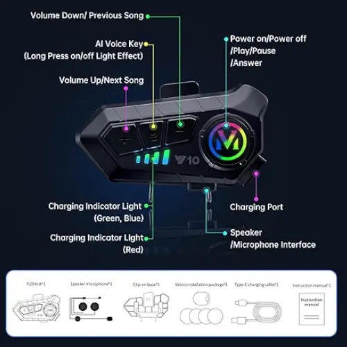 Material: Fabricado con carcasa plástica resistente de alta calidad, este intercomunicador está diseñado para adaptarse a cualquier tipo de casco gracias a su sistema de micrófono 2 en 1.